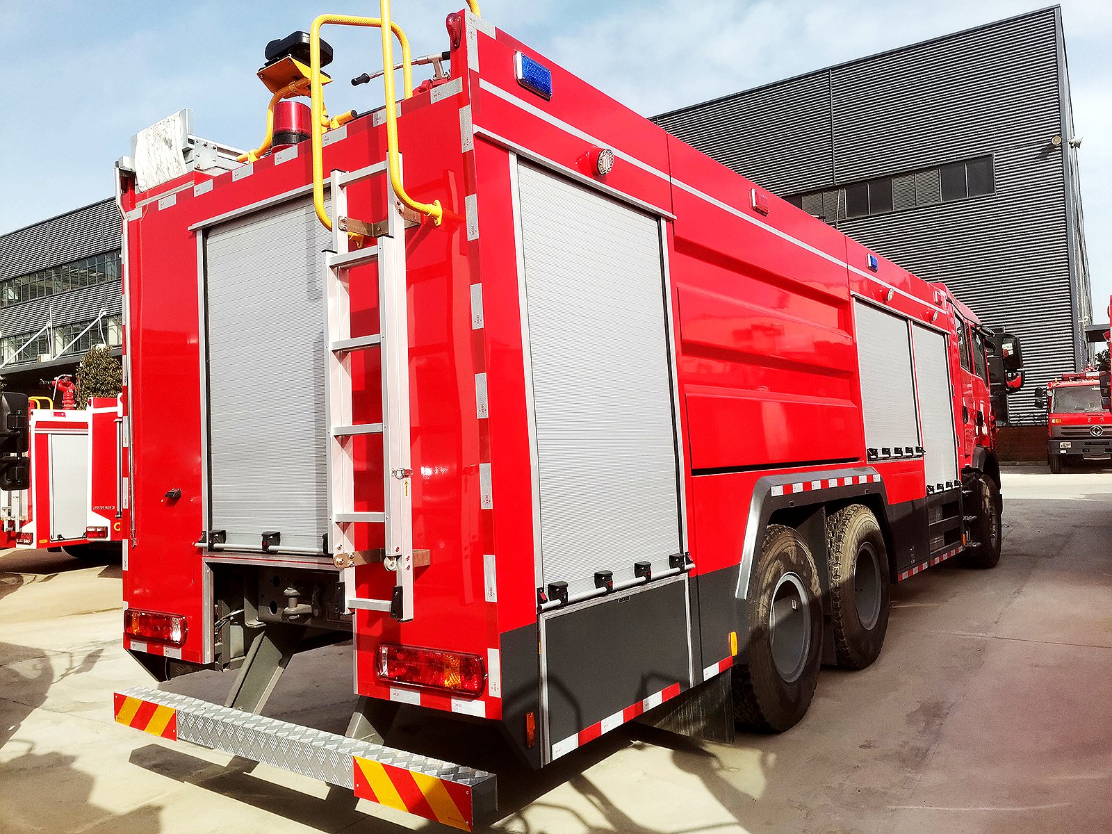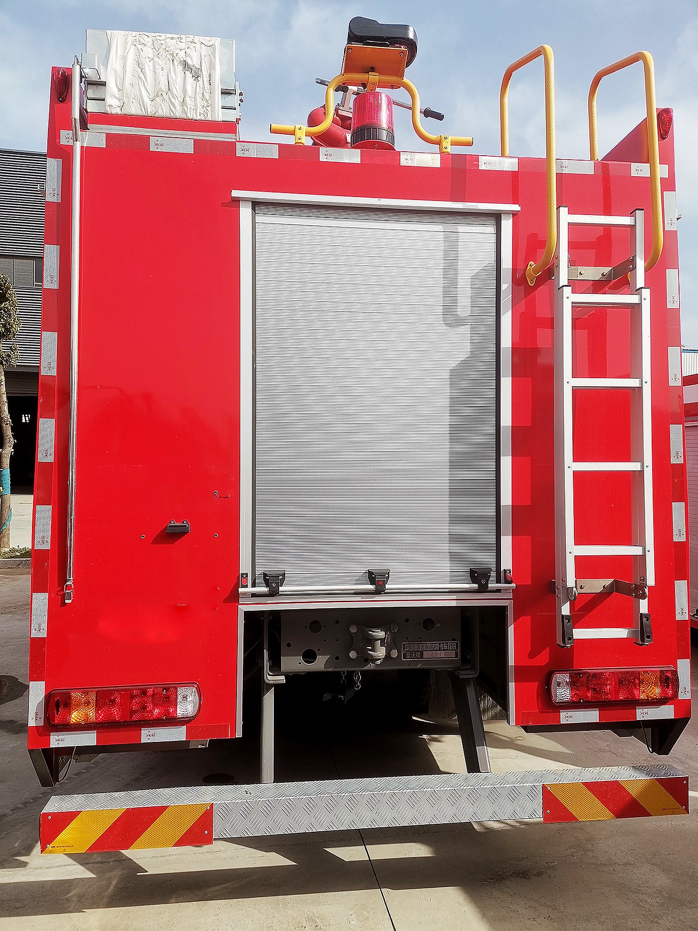 2、后部为泵室,配有仪表板及操作系统,器材箱和泵室均设带锁卷帘门。框架焊接结构,并确保其强度和刚度。